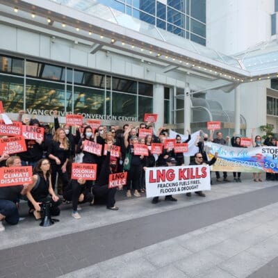 The Coastal GasLink pipeline violates Wet’suwet’en rights and title, and lacks consent of Wet’suwet’en hereditary chiefs. It would transport liquefied natural gas to the proposed LNG Canada terminal, the largest ever LNG terminal proposed in Canada. By financing Coastal GasLink and LNG Canada, these pensions and banks are implicated in violent and destructive extractivism on unceded Gidimt’en territory.